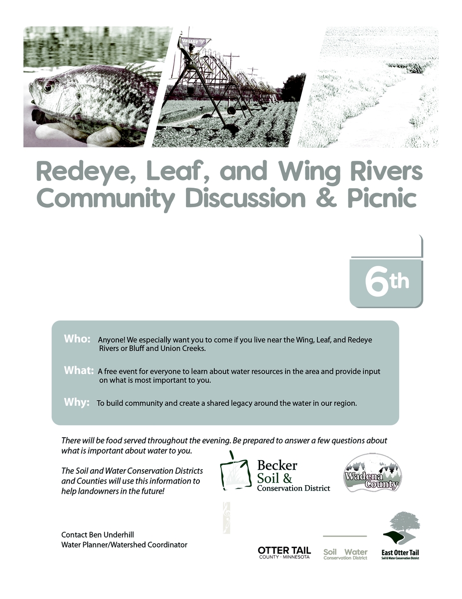 The Leaf, Wing, Redeye 1W1P was approved on August 26th, 2020 by the Board of Water and Soil Resources. The final plan is intended to provide a guide to local resource professionals, including SWCD and county staff, on where to spend their time and money to get the best results. Please see below for the plan and supporting documents that were developed as part of the plan.